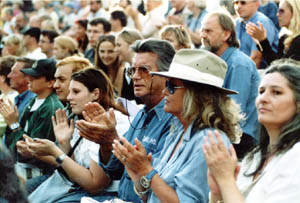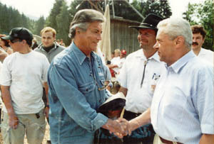 Pierre Brice und seine Frau Hella applaudieren begeistert | Der Bürgermeister Heinz Hochsteiner begrüßt Pierre Brice | ||||||